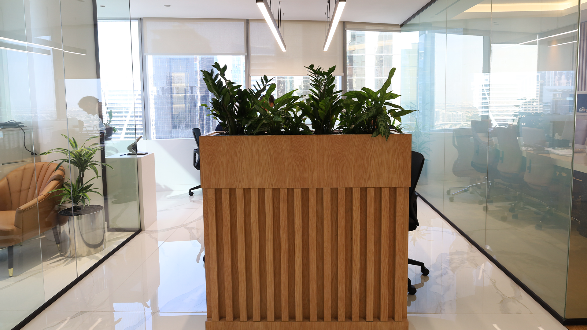 For Fertcom, a leading player in the agricultural space, we designed a workspace rooted in clarity and trust. The interiors draw inspiration from the earth—organic hues, clean layouts, and natural materials define the visual story. It’s where sustainability meets professionalism.